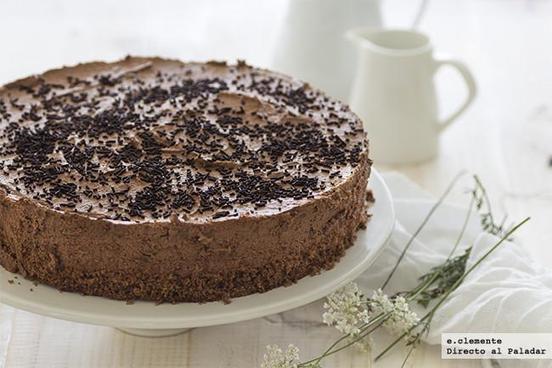 Receta sin horno de tarta de mousse de chocolate. Receta con fotos del a paso a paso y sugerencias de presentación. Consejos de elaboración. Rece...